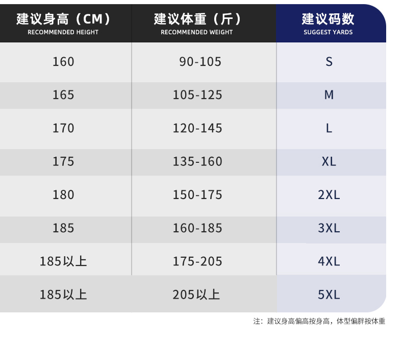 工作服上的M/L/XL號是多大: