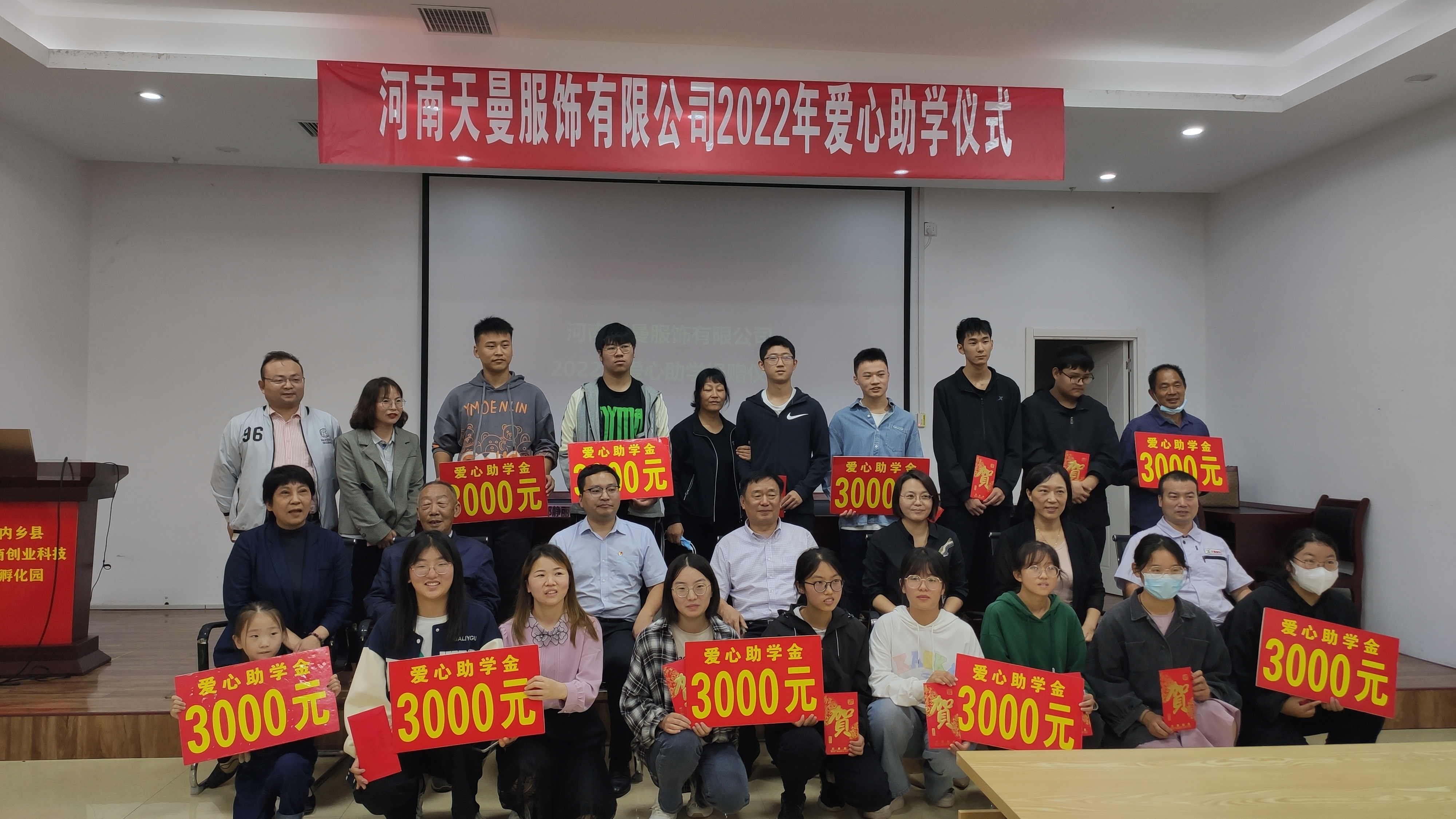 學生家長代表分享到:“孩子們考上大學很高興,今天得到了天曼服飾的助學資助很激動,心中充滿了感激和感謝”。