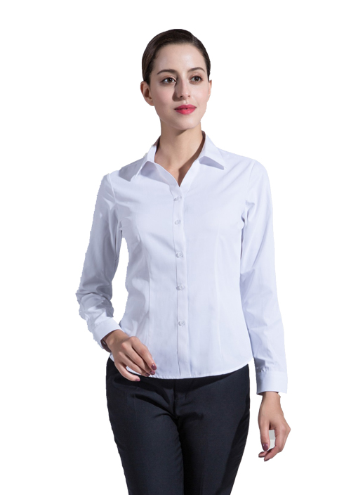 品名:女長(zhǎng)袖V領(lǐng)襯衣;版型:修身版;貨號(hào):TWD3501 ;面料:T3501;顏色:純白細(xì)斜紋 ;Fabric:C35/T65/32S/2*32S/2