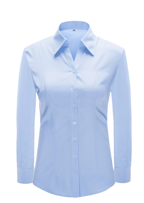 品名:女長袖v領襯衣;版型:修身版;貨號:YW4517 ;面料:Y4517;顏色:淺藍色細斜紋 ;Fabric:C45/T55