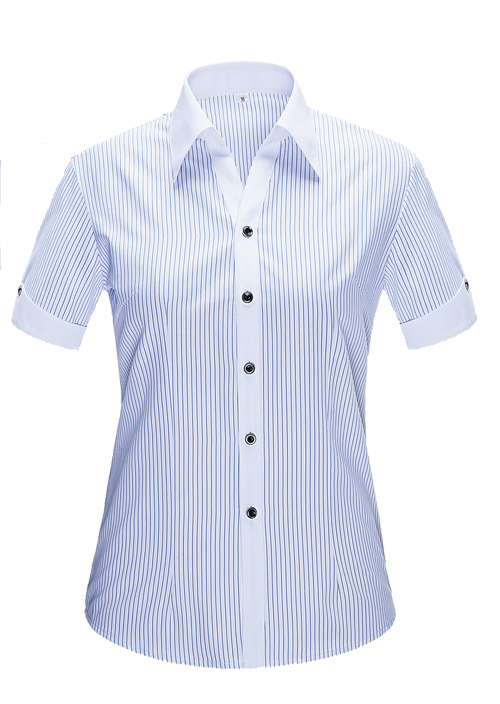 品名:女短袖v領襯衣;版型:修身版;貨號:YWD3006 ;面料:Y3006;顏色:藍寬細條紋 ;Fabric:C30/T48/TS22